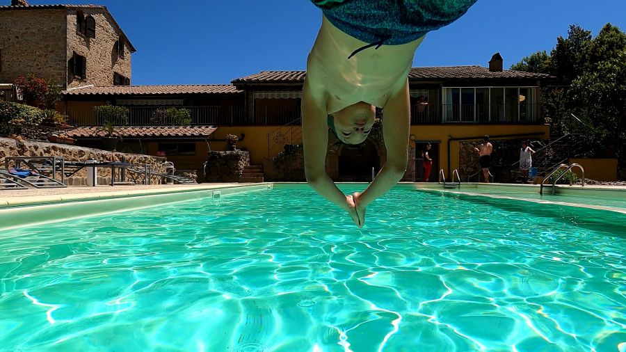 Der Pool ist mit 7 x 14 m groß genug um ordentliche Bahnen schwimmen zu können. Es gibt einen abtrennten Kinderbereich und einen Whirlpool. Der Pool ist rund um die Uhr geöffnet.